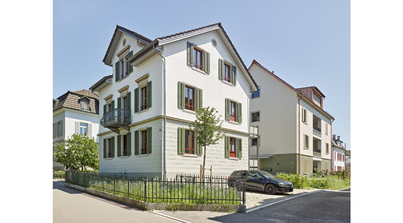 An der Haltbergstrasse wurde neben dem Neubau das bestehende MFH revitalisiert, der ganze Innenausbau wurde erneuert. Das komplett renovierte Haus umfasst zwei 3.5-Zimmer-Wohnungen sowie eine 2.5-Zimmer-Wohnung mit einem Dachbalkon. Die Aussenwände wurden innen gedämmt. Erdsonden tragen zu einer unabhängigen Energieversorgung bei.